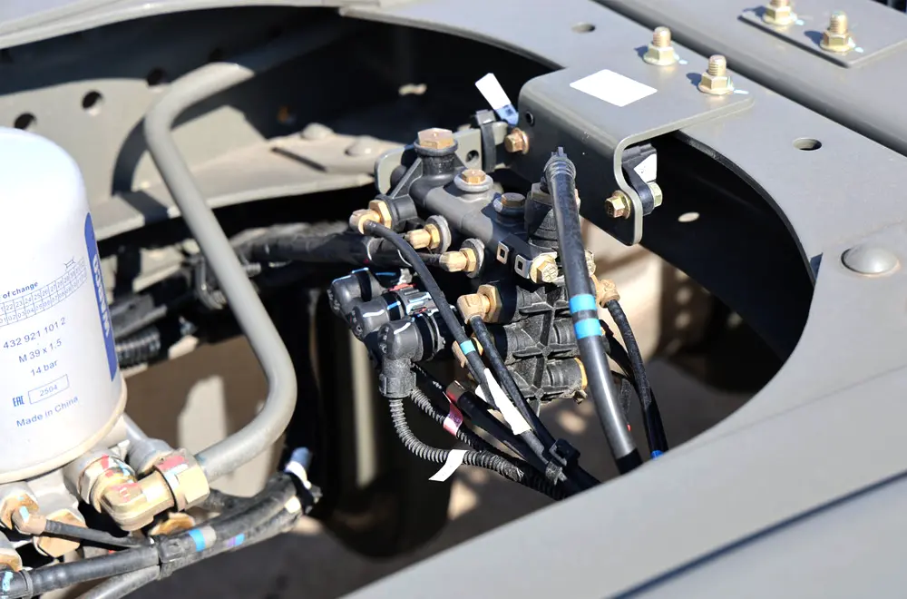 The transmission system is matched with a Sinotruk-developed HW25712XSTCL manual gearbox, featuring 12 forward gears and 2 reverse gears. The shifting logic is clear, and the transmission efficiency is outstanding, forming a golden power combination with the engine, balancing power output and fuel economy.